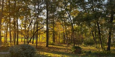 Autumn displays a golden peaceful sunset